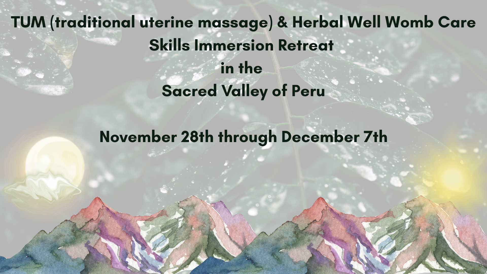 Join us for an unforgettable Skills Immersion Retreat into the world of Traditional Uterine Massage (TUM) + Well Womb Care and related practices in the Quechua Nation (Cuzco and surrounding area) of Peru!